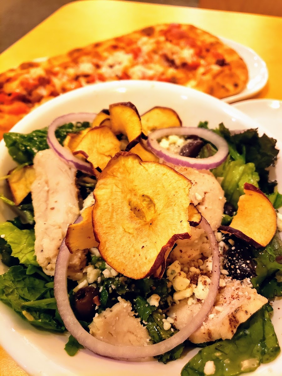 Very large restaurant. We got these poppy seed salads with bread. Out meal was ready in less then five minutes on a Sunday afternoon This location has a parking lot, two different eating areas