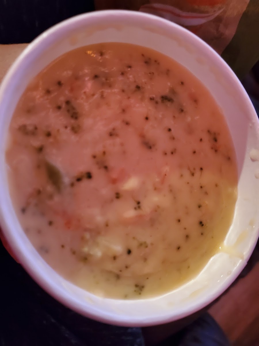 I went here with my 2 oldest kids for a quick lunch and we all enjoyed our food very much! I usually get the broccoli cheddar soup but I ended up getting the creamy chicken with white and wild rice this time. My oldest got the mac and cheese which is definitely made with the broccoli cheddar soup and it's very good and then my second oldest got the broccoli cheddar soup. We got some baked goods to take home. The chocolate filled croissants are to die for. So delectable! The pumpkin muffin was also VERY good. Overall I'm very impressed with everything we got. My oldest loves coming here and honestly I cant complain. I always get something good to snack on here.